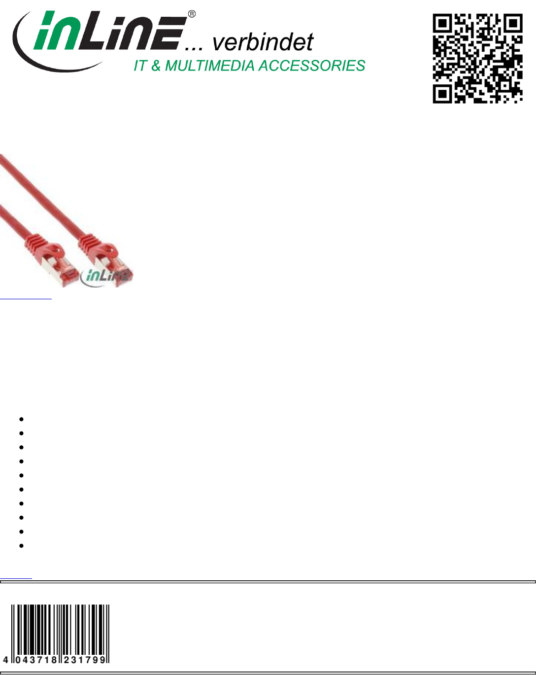 InLine® Patch cable, S/FTP (PiMf), Cat.6, 250MHz, PVC, CCA, red,