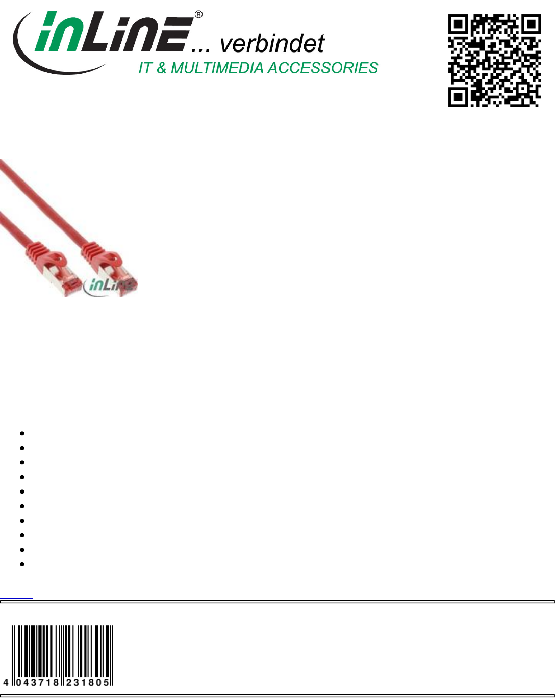 Category: Cable, Patch Cable Cat.6, Cat.6 S/FTP (Pimf)