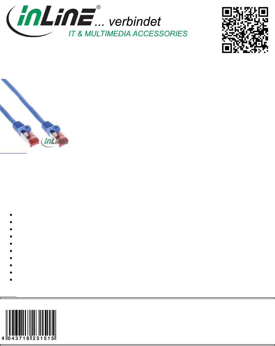 Category: Cable, Patch Cable Cat.6, Cat.6 S/FTP (Pimf)