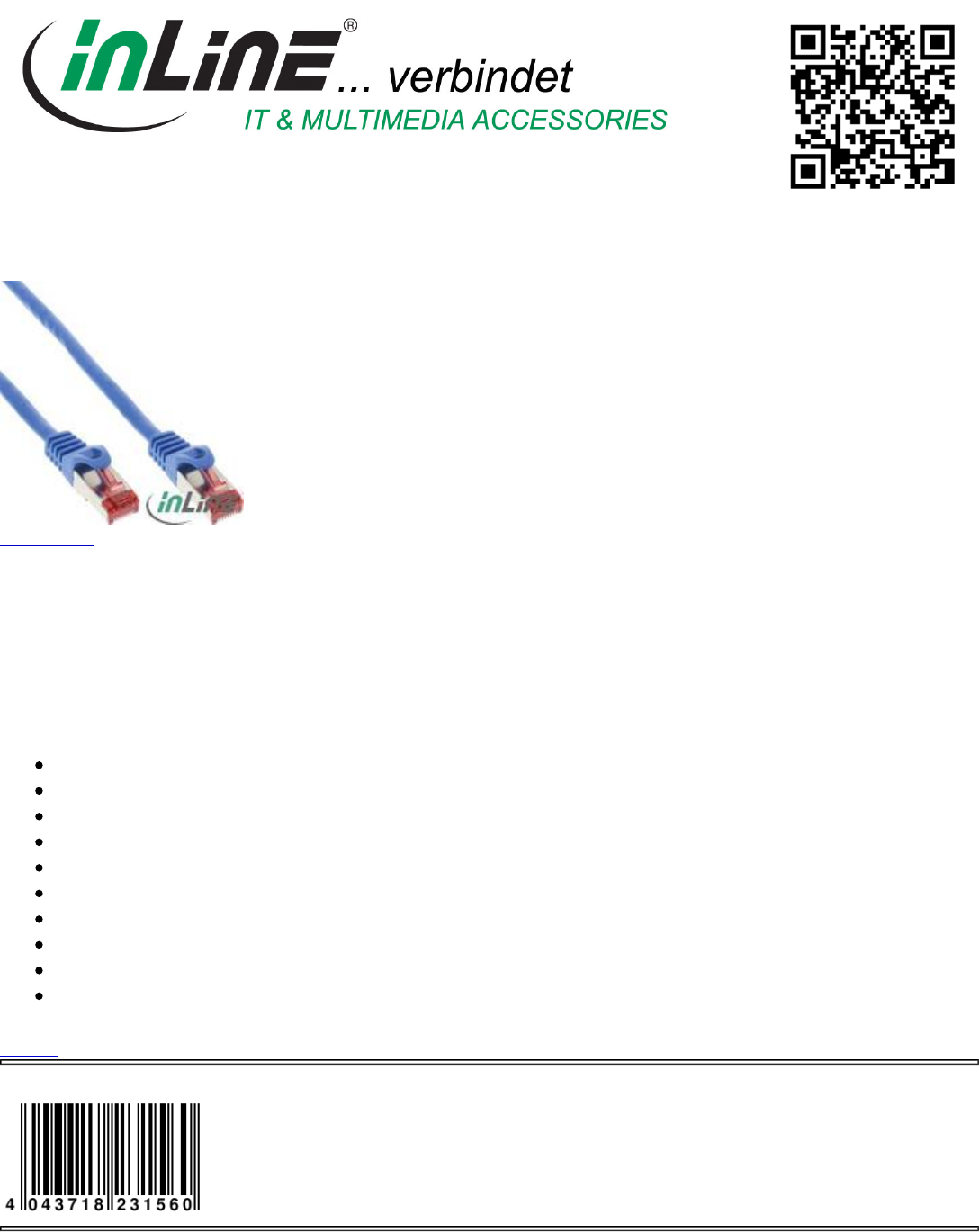 Category: Cable, Patch Cable Cat.6, Cat.6 S/FTP (Pimf)
