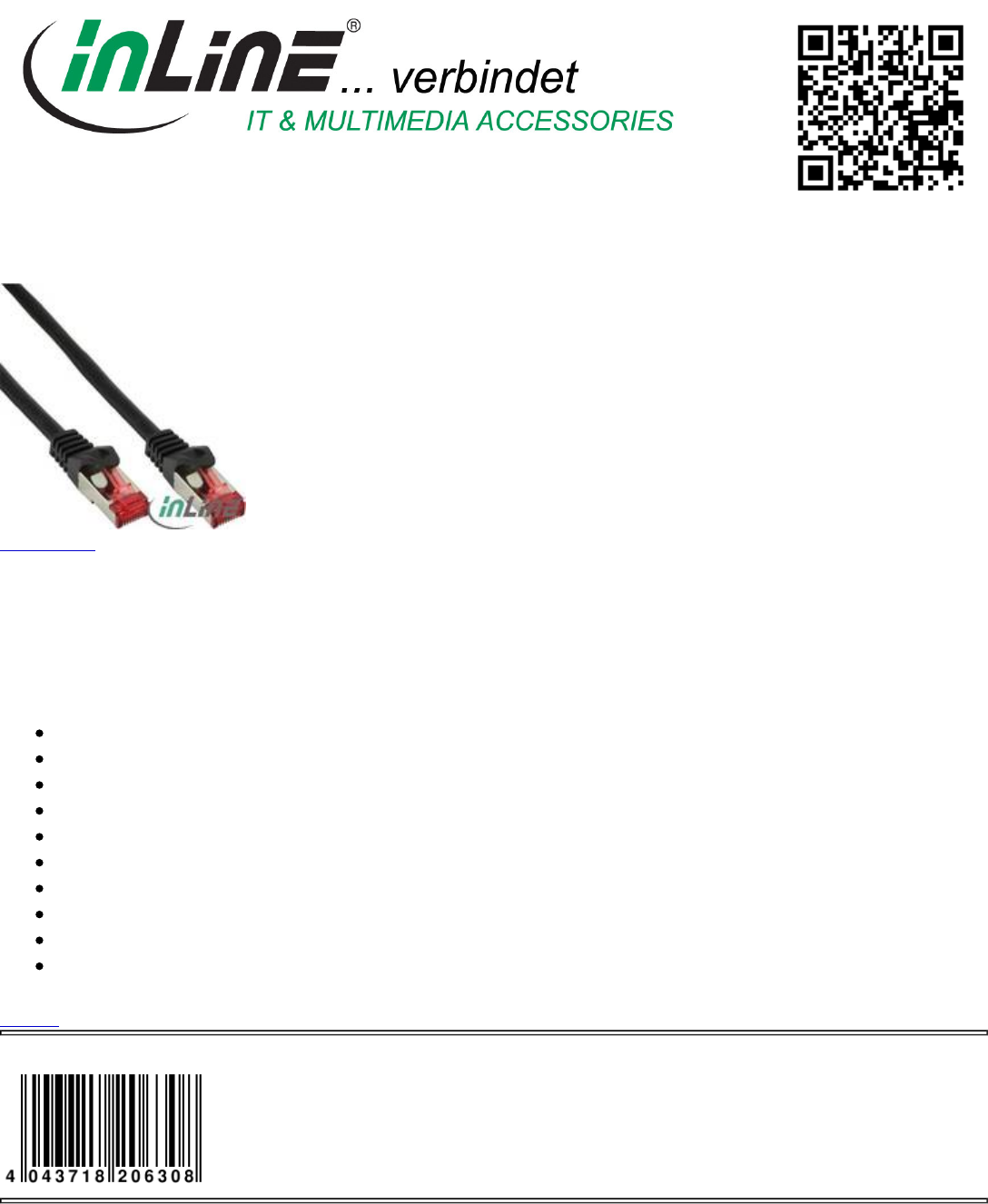 InLine® Patch cable S/FTP (PiMf), Cat.6, halogen free, black, 1m