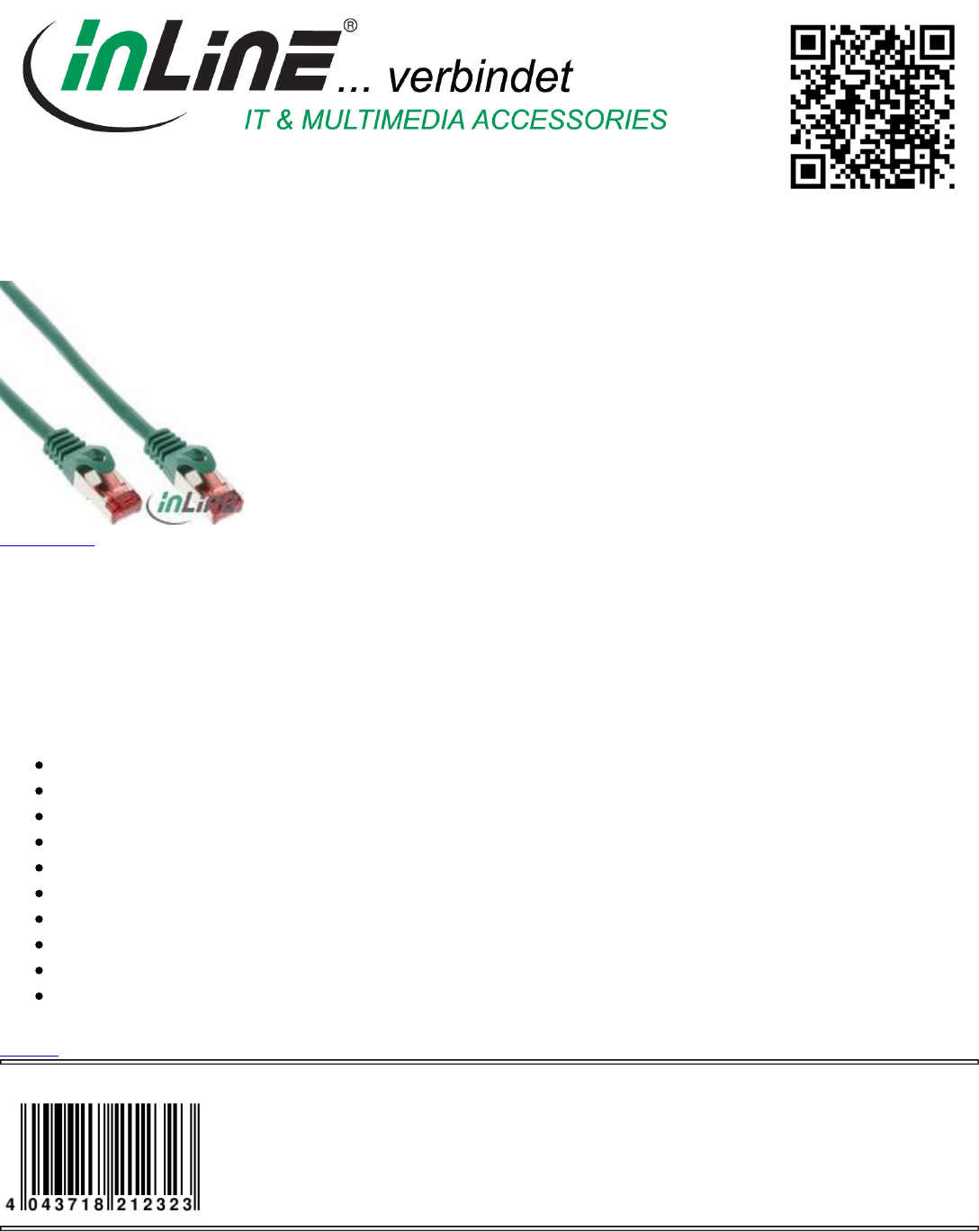 InLine® Patch cable S/FTP (PiMf), Cat.6, 250MHz, halogen free,