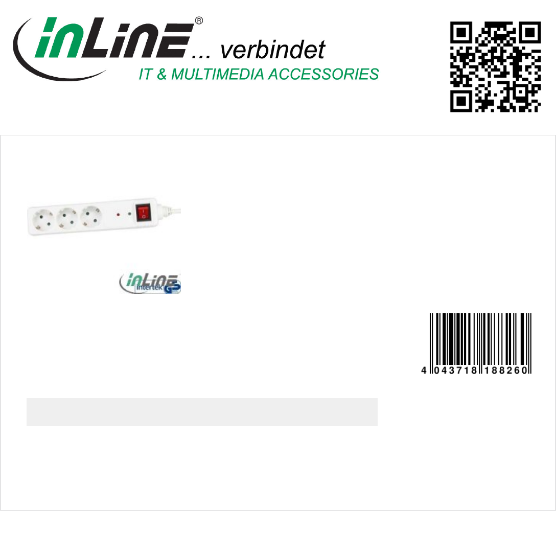 InLine® power strip, white, 3-fold with overload protection, 3x Schutzkontakt, with on/off