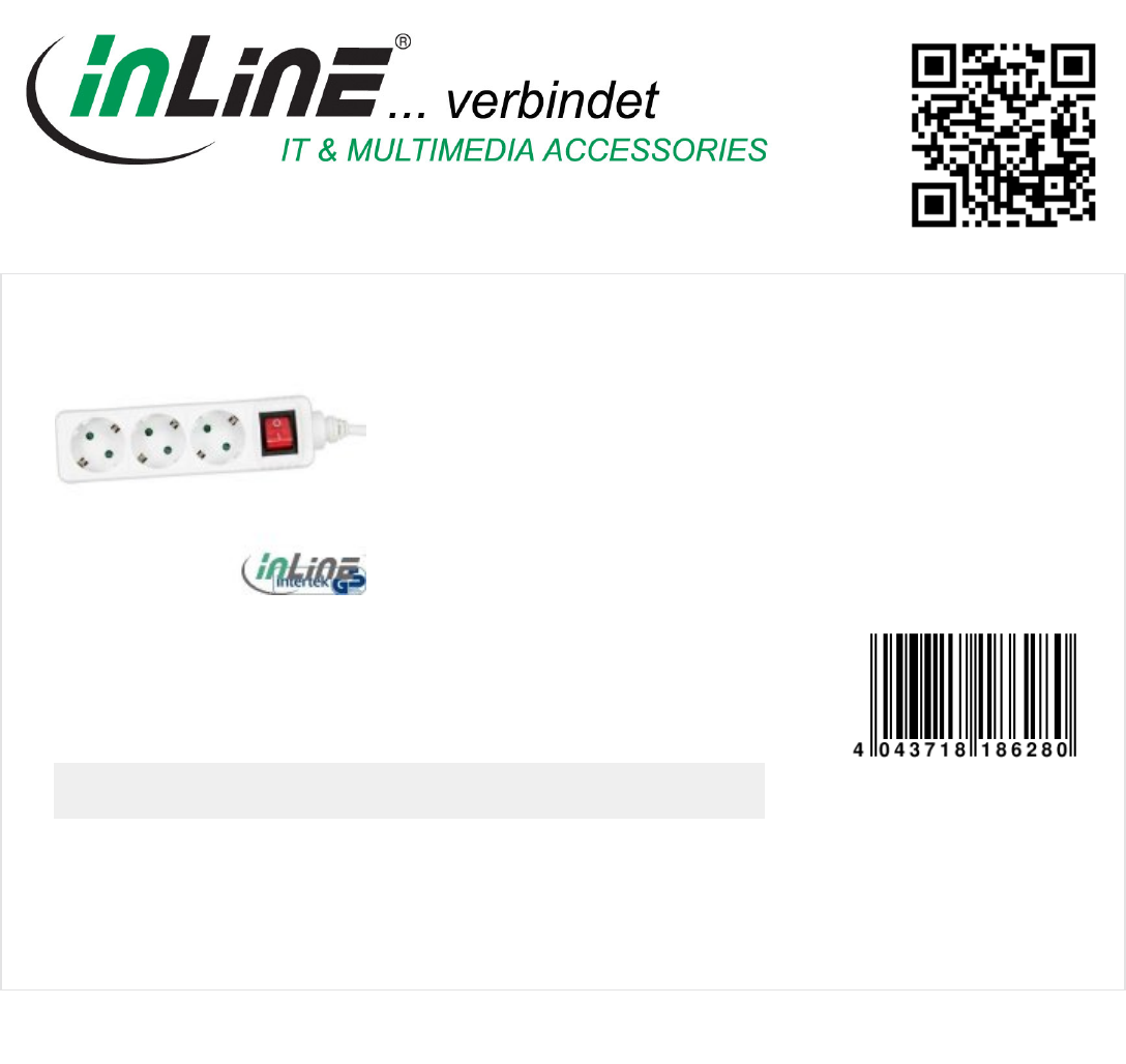 InLine® Power strip, white, 3-fold, 3x