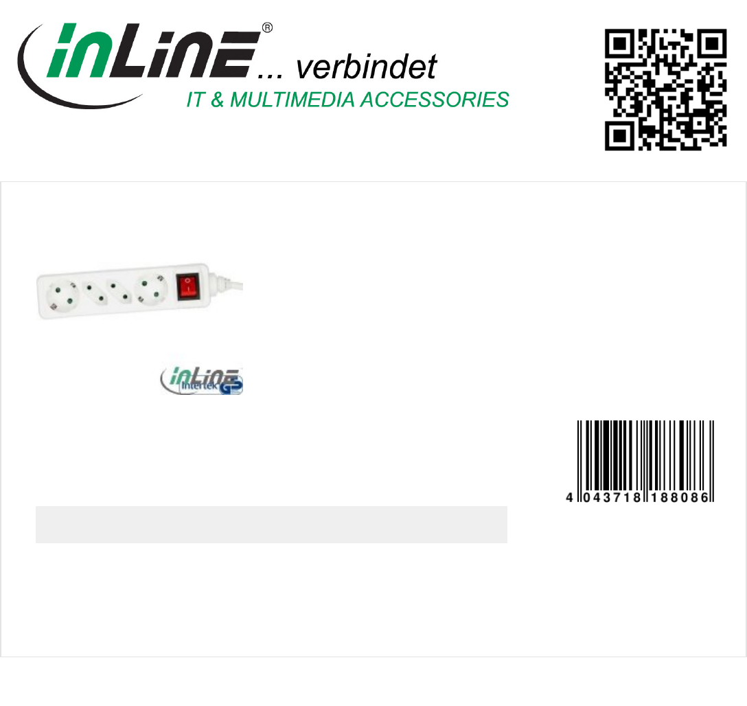 InLine® power strip, white, 4-fold with on/off switch, 2xSchutzkontakt + 2xEuro, 3m supply