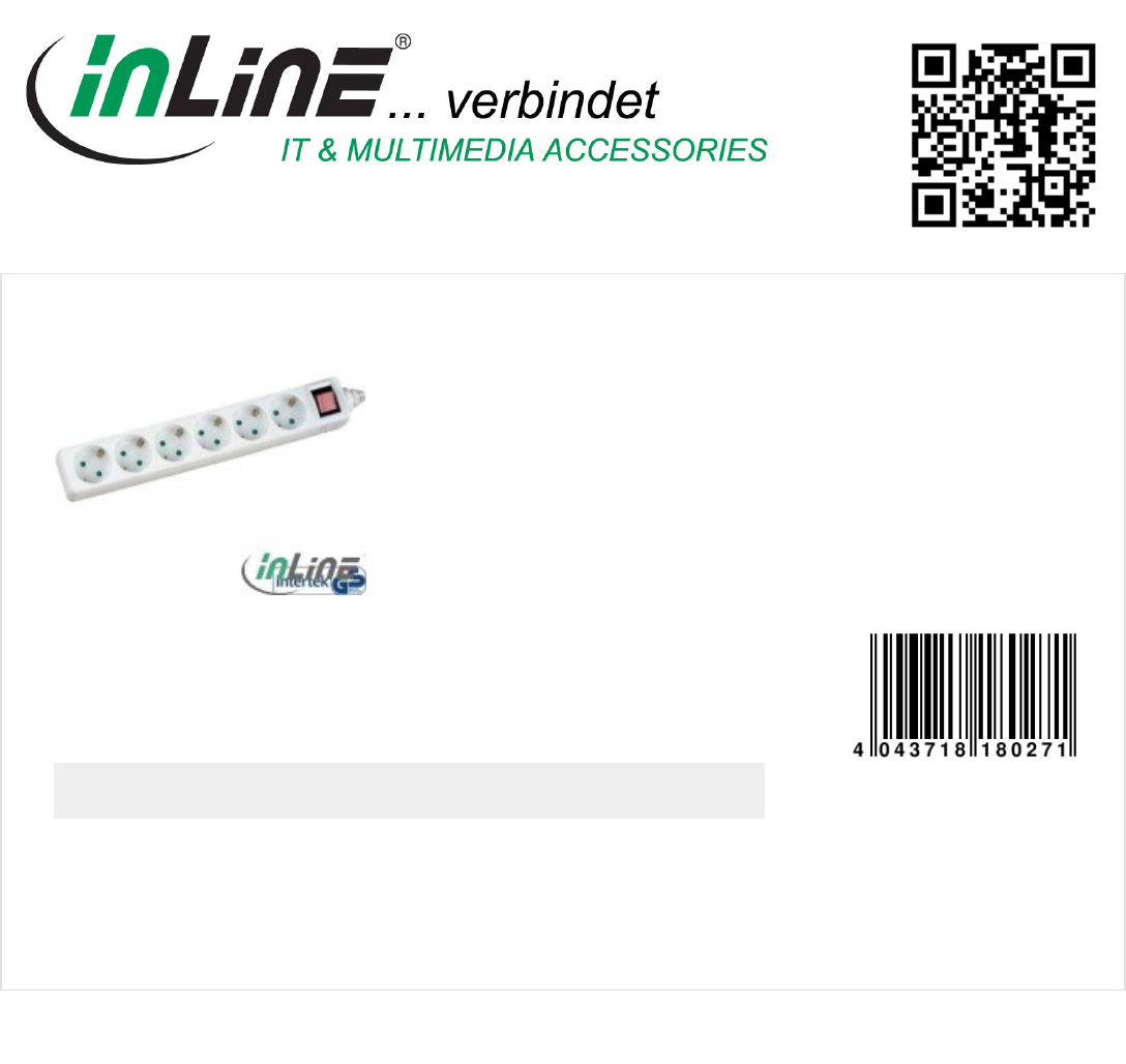 InLine® Power strip, white, 6-fold, 6x